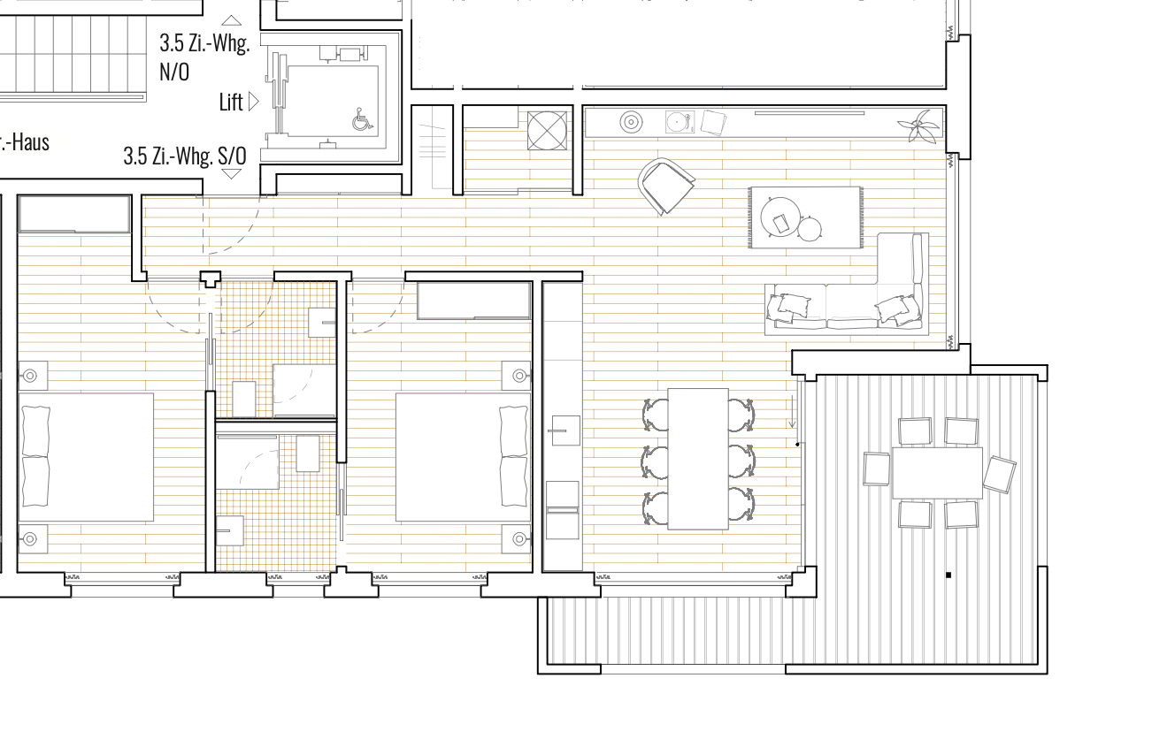 Materialität und Farbe einzelner Bauteile können vom Käufer bestimmt werden. Frühzeitig mitgeteilte Spezialwünsche werden berücksichtigt, insofern sie die Bauausführung nicht beeinträchtigen. Entsprechende Minder- bzw. Mehrkosten gehen zu Gunsten bzw. zu Lasten des Käufers zuzüglich 10 % Architektenhonorar. Änderungen des Baubeschriebs, die aus technischen bzw. wirtschaftlichen Gründen erforderlich sind bleiben vorbehalten. Leistungen, die im Baubeschrieb nicht erwähnt sind, werden in Standardqualität ausgeführt. Die eingezeichnete Möblierung ist nicht im Kaufpreis enthalten. Im Verkaufsdossier geben die Visualisierungen ausschließlich die Sicht des Illustrators wieder. Es handelt sich nicht um reale, sondern digitalisierte Fotomontagen; diese sind nicht verbindlich. Die verwendeten digitalen Visualisierungen stellen lediglich Beispiele dar, die in dem Objekt noch nicht vorhanden sind, sondern so oder ähnlich realisiert werden können. Sie haben Beispielcharakter. Die Preise verstehen sich für 2022.